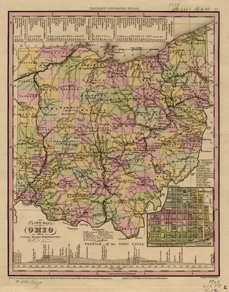 A New Map of Ohio with its canals, roads and distances, by H.S. Tanner, 1836.