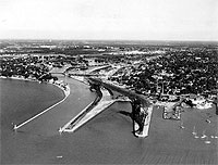 See images from the Cleveland Press Collection taken of the harbor through the years or read a 1964 Plan for the Port of Lorain [PDF]. View maps of the port from the U. S. Army Engineer District, Buffalo as published in the Great Lakes Harbor Study - Interim Report on Lorain Harbor, Ohio in 1960: