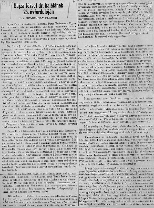 - Homonnay Elemér: Bajza József dr. halálának 25. évfordulóján. = In: Katolikus Magyarok Vasárnapja 1963.01.27.