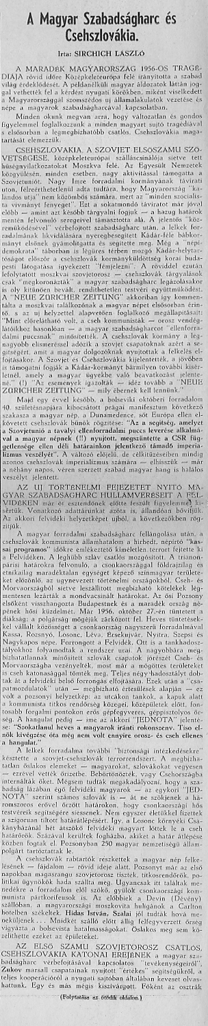 - Sirchich László: A magyar szabadságharc és Csehszlovákia. = In: Szittyakürt. 1971. August