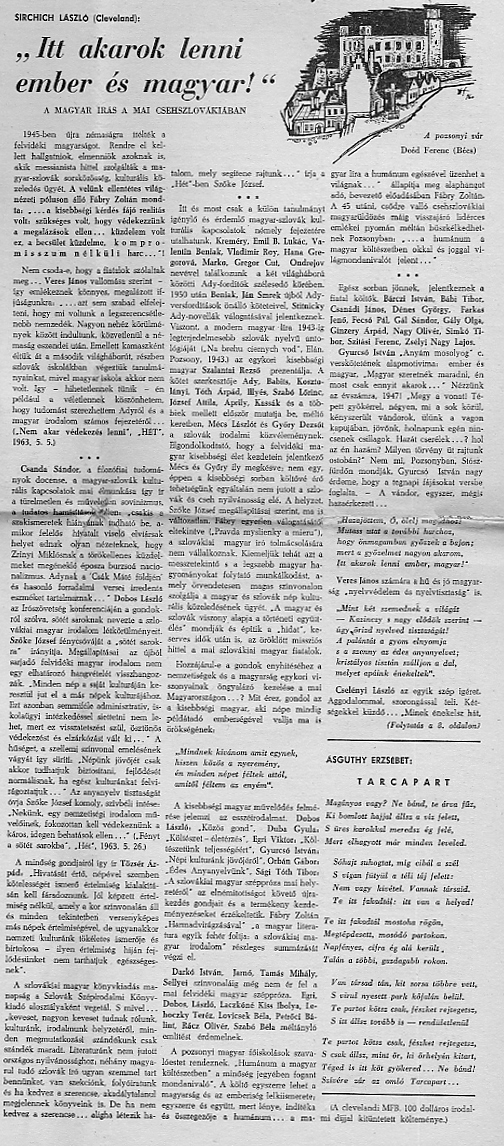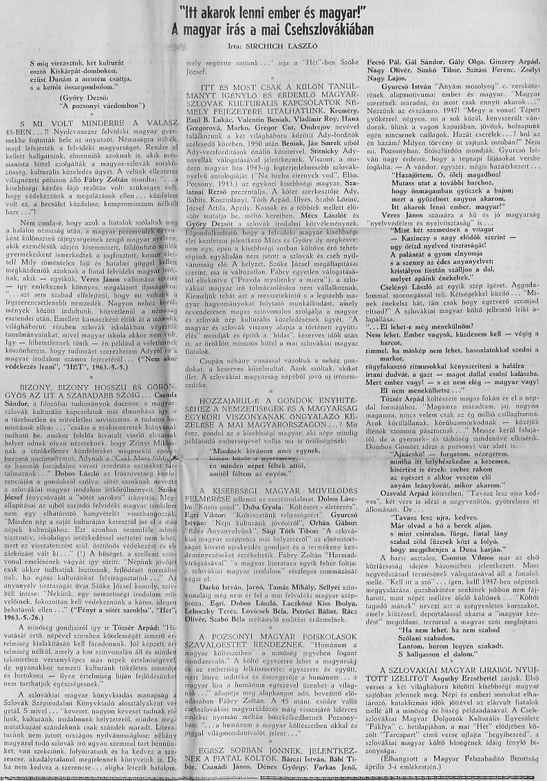 - Sirchich László: "Itt akarok lenni ember es magyar". A magyar irás a mai Csehszlovákiában. = In: Hontalan Magyar Kultúra. 1965.05.02.