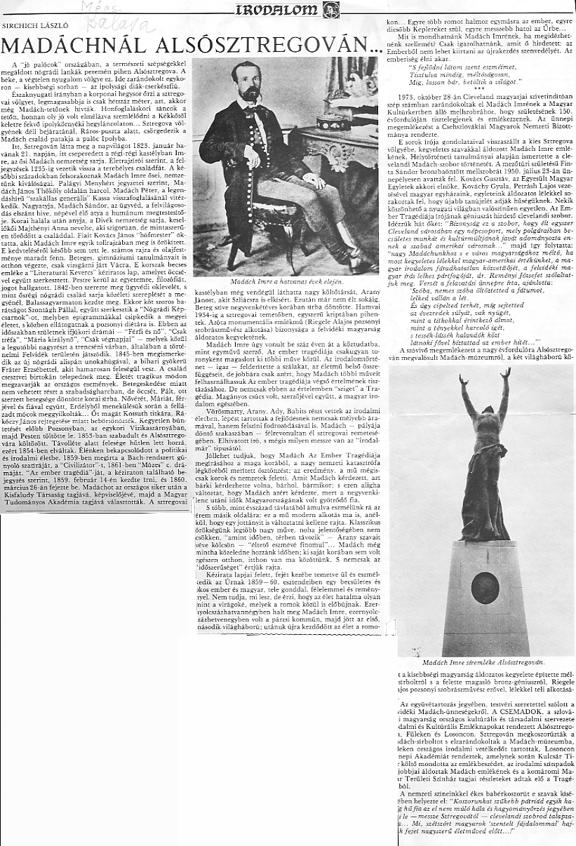 - Sirchich László: Madáchnál Alsósztregován. = In: Nyugati orszem. 1982. July - August