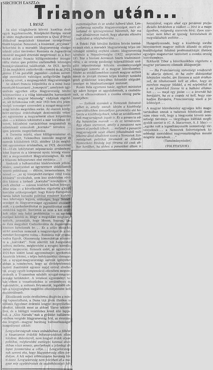 - Sirchich László: Trianon után. = In: Katolikus Magyarok Vasárnapja. 1978.06.04.