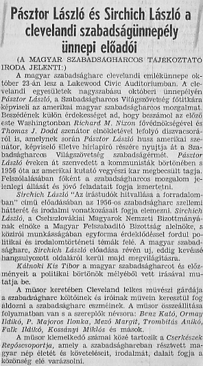 - Pásztor László és Sirchich László a clevelandi szabadságünnepély ünnepi eloadói. = In: Katolikus Magyarok Vasárnapja.