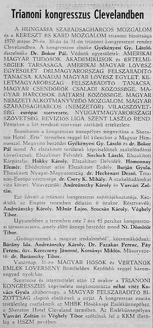 - Trianoni kongresszus Clevelandban = In: Katolikus Magyarok Vasárnapja 1970.05.24.