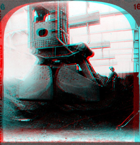 For a sight of miners at work 140 feet below the ground, getting out iron ore, use Stereograph 7947. For the unloading of a Lake steamer, use 7970. For the melting of ore in a blast furnace, 5520. For the shaping of a 90 ft. beam of red-hot steel, 5523. -