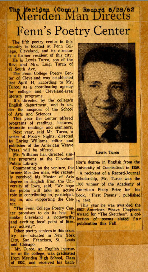 On April 14, 1962, Turco announced the founding of the Poetry Center at Fenn College. Over the next two years, Turco would propel the center to achieve great success and a lasting legacy in the Cleveland community.